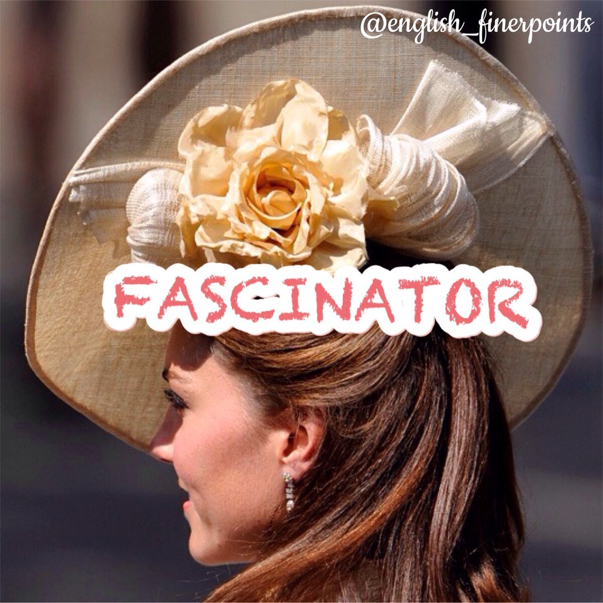 My page on Instagram english_finerpoints 🔹A fascinator [ˊfæsɪneɪtə] is a small headpiece that is generally worn on the right side of the head. It is often made from beads, ribbons and feathers and can be attached to headbands, combs, elastic or clips.