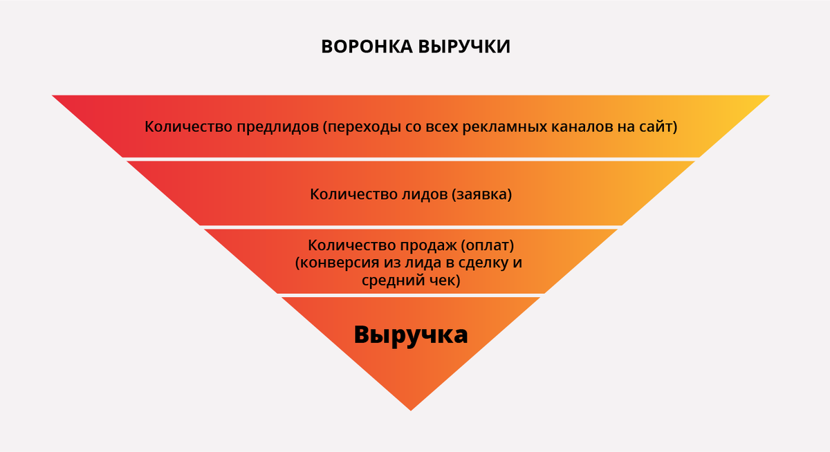 - количество продаж — для формирования выручки учитывается конверсия из заявок в сделки, которые принесли деньги, и средний чек