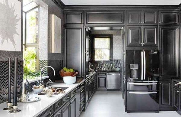 Кухонный гарнитур черного цвета призван, чтобы привлекать к себе особое внимание. Но не у каждого хватит смелости , чтобы обзавестись подобной роскошью. Черная кухня придется по душе людям смелым и экстравагантным, которых вряд ли можно причислить к категории домоседов и любителей уютного быта. Кухня черного цвета вполне может стать эффектным украшением холостяцкой квартиры, хозяин которой умеет произвести неизгладимое впечатление на гостей. Однако, и для тех кто принадлежит к категории домоседов и любит готовить стильная и яркая кухня с черными фасадами может стать настоящей находкой. Мы откроем 5 секретов, которые помогут вам стать обладателем идеальной черной кухни. Секрет № 1. Выбираем текстуру и материал фасадов Фасады черной кухни могут быть выполнены из различных материалов: дерево, МДФ, ЛДСП, акрил, стекло. Наиболее эффектно выглядят глянцевые фасады выполненные из акрилового пластика или МДФ, покрытого эмалью. Такие фасады выглядят богато и за счет отражающей возможности п