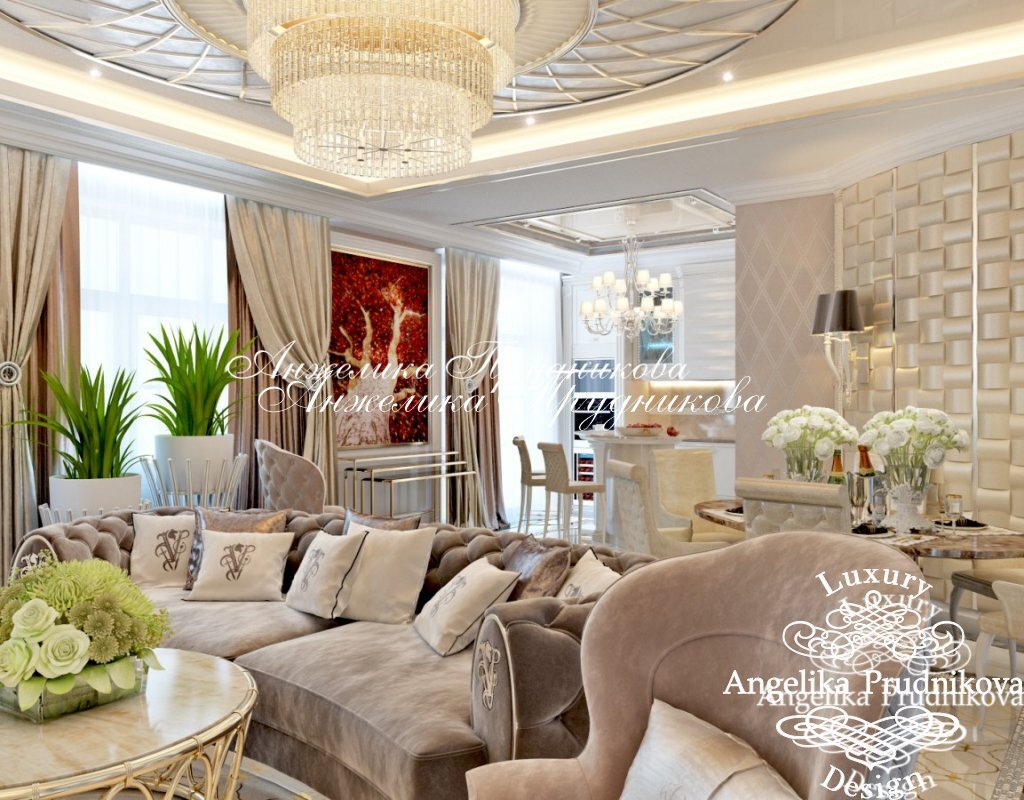 Гостиная – это центр домашней Вселенной, место для общения, комфортного отдыха и приема гостей. А значит, она должна быть уютной, красивой, подчеркивающей индивидуальность и статус хозяев. В нашей галерее представлены фото интерьеров элитных гостиных комнат в разных стилях. Они дают полное представление о том, как должен выглядеть эксклюзивный дизайн интерьера, а стоимость услуг по проектированию можно посмотреть в разделе «Цены». Принципы оформления интерьеров гостиной в квартире и загородном доме В дизайне гостиной решающее значение имеют: Стиль Для создания роскошного частного интерьера подойдет стиль арт-деко. Ценителям элегантности и изящества понравится неоклассика, а тем, кто мечтает о респектабельной аристократической гостиной с дорогой массивной мебелью, – английский стиль. Для творческих натур оптимальным выбором станет лофт, а для поклонников урбанизма – минимализм или хай-тек. Планировка Гостиная может быть как обособленным помещением, так и частью студийного пространс