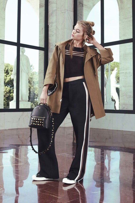 Если раньше имели место спортивные зауженные модели, то в этом сезоне они стали гораздо шире. Изюминку этим брюкам придает то, с чем их сочетают. Если вы оденете такие брюки на пробежку – это не будет актуально, сейчас их сочетают с лодочками, классическими или подчеркнуто женственными вещами.