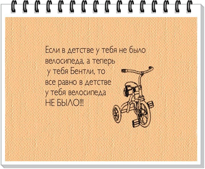 Если в детстве у тебя не было велосипеда, а теперь у тебя BMW последней модели, то все равно в детстве у тебя не было велосипеда. Знаете такую поговорку?