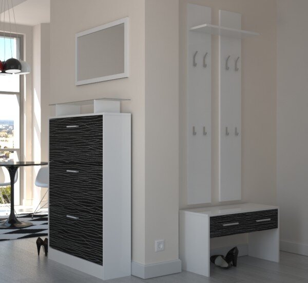 В маленькой прихожей не поместится большое количество мебели, поэтому тут надо обойтись минимальным набором. Если поместится шкаф отлично. Позаботьтесь о том, чтобы дверка шкафа была оснащена зеркалом. Какая прихожая без зеркала? Если места для шкафа нет, можно поставить вешалку для верхней одежды, а на стене соорудить пару полок, повесить зеркало, шкафчик для всяких мелочей.