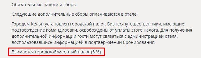 Взимается городской/местный налог (5 %) Как Вы видите у меня сраз