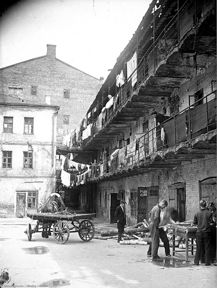 Только в 1826 году московский губернатор разрешил купцам из Шклова и Орши приезжать в Москву на ограниченное время и останавливаться только в указанном месте. Местом этим стал двухэтажный дом, принадлежавший ранее действительному статскому советнику Глебову (потому и Глебовское подворье), а затем отписанный им казне. С этого времени евреи могли находиться в Москве лишь временно. Но, разумеется, евреи не были бы евреями, если б не научились закон обходить. Так что, как писала газета «День»: «Евреи как будто сроднились с этой местностью, и русское население, так сказать, с ним сжилось и свыклось, не питая к ним никаких недружелюбных чувств. Еврейское население Зарядья состоит из мелких торговцев и ремесленников; слепая приверженность к старине, та же бедность и нужда с мелочными заботами, как в наших голодных северо-западных губерниях».