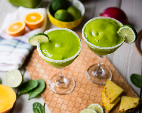 Мы так любим вкус этого тропического смузи, что трудно поверить, что он полон питательных веществ, которые любят наши тела! Отлично подходит для пополнения потерянных электролитов и восстановления после похмелья СОСТАВ . 2 чашки свежего шпината · 1 стакан кокосовой воды (несладкой) · 1 апельсин (очищенный) · 2 стакана манго (замороженное) · 1 стакан ананаса (замороженный) · сок 1/2 лайма (плюс лайм на украшение) · Крупная соль для оправы ИНСТРУКЦИИ 1. Смешайте шпинат, апельсин и кокосовую воду до однородной массы. 2. Добавьте манго, ананас и сок лайма. Смешать снова. 3. Сохраните выжатый лайм и протрите его по ободку бокалов Маргариты. Опустите ободок в крупную соль. 4. Налейте смузи в подготовленные стаканы и украсьте кусочком лайма. ПРИМЕЧАНИЯ *Используйте замороженные фрукты, чтобы сделать смузи холодным.