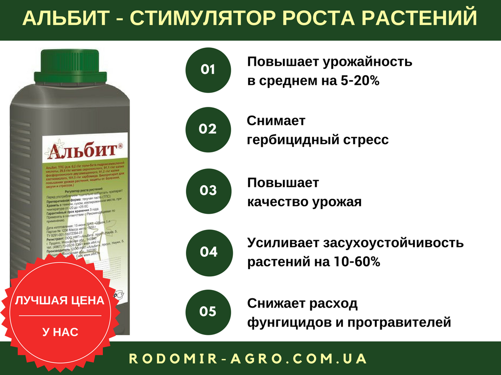 Препарат «Альбит» имеет не только фунгицидные свойства. Это средство является одновременно антидотом (нейтрализатором стресса после использования различных гербицидов), а также регулятором роста садовых и огородных культур. Может применяться совместно с гербицидами, удобрениями минеральным и инсектицидами. Подходит для протравливания семян. Читать подробнее - http://sornyakov.net/tips/albit-tps.html Больше интересных статей на sornyakov.net!