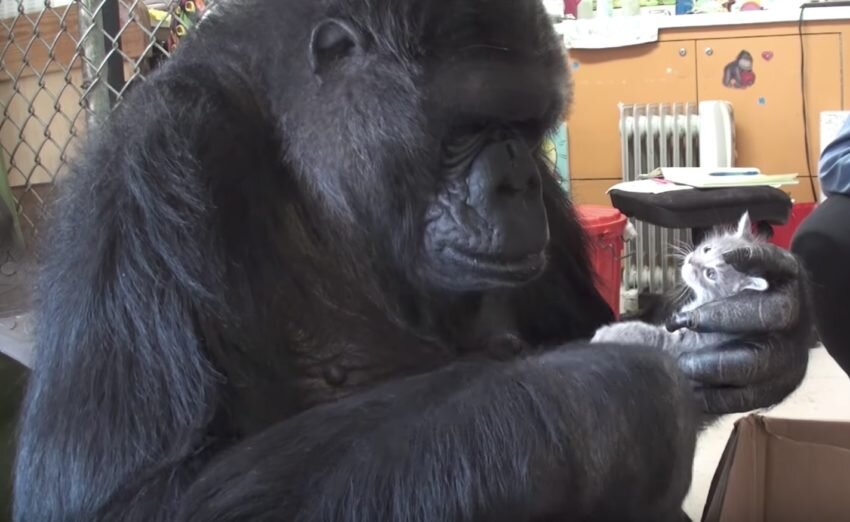 Все любят маленьких котят. Интернет полон смешных и милых видео о котятах и их проделках. Как можно не умиляться этим чудесным пушистым комочкам? Забавные котята способны растопить любое сердце. Даже большие гориллы не могут устоять перед пушистыми малышами. Смотрите милый и забавный видеоролик о том, как горилла Коко встретила котят. Удивительное дело! Огромная черная горилла сначала нежно качала игрушечного пупса, затем увидела коробку с целой оравой котят. Малышам интересно все вокруг, смешные мордашки осматривают присутствующих и совсем не боятся большую гориллу. Узнайте скорее, что же было дальше, как прошло знакомство животных? Это трогательное видео покорило интернет, множество людей оценили искренние чувства гориллы Коко, её способность любить и заботиться о малышах, неважно, горилла это или котёнок. Искренняя и нежная Коко может поучить людей безусловной любви и привязанности, в большом сердце гориллы найдется место всем, даже котятам, которые только рады поиграть с большим др