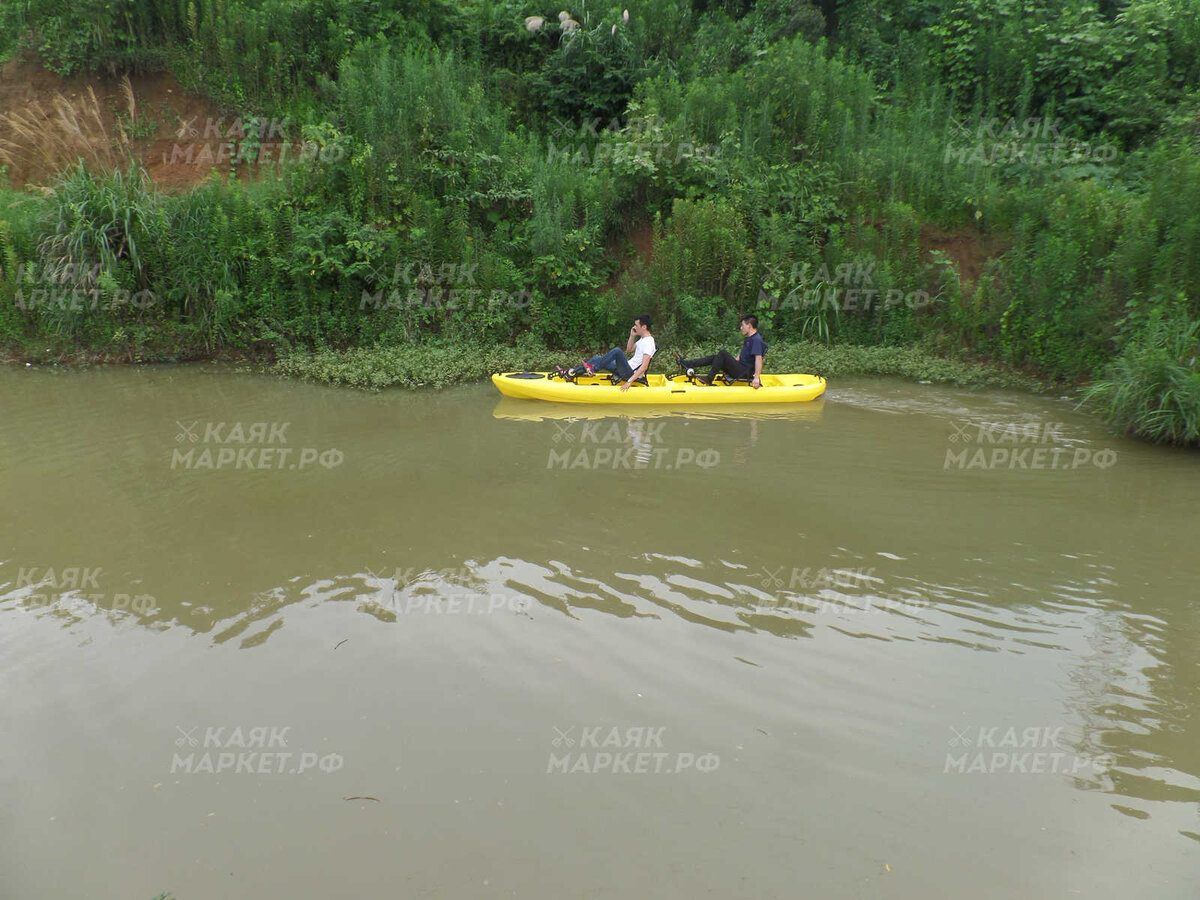 При виде каяка с педальным управлением у зрителей возникает масса вопросов. Насколько тяжело педалировать? Не устают ли ноги? Снимаются ли "плавники" снимаются? Какую скорость развивает каяк? А можно только грести? А одновременно грести и работать педалями? Как совершать повороты? На эти вопросы попробуем ответить на примере педального каяка, модель OCTOPUS KL-32P (Россия). Посмотреть каяк OCTOPUS KL-32P на сайте Максимальная скорость, которую способен развить каяк с педалями – 10 км/час. Нагрузка, которая создается для ног небольшая, можно час-два спокойно крутить педали, мышцы икр и голени не забиваются. Оптимальный режим работы создается при скорости 5 км/час. Возможность освободить руки понравится рыбакам, которые держат снасти, фотографам, отдыхающим, совершающим водные прогулки. Ведь ноги более сильная часть тела, они устают меньше, чем руки. Посмотреть подробнее Движет каяк пропеллер, такой как в лодках с мотором, и два плавника, выполненные из упругого пластика. Работают они