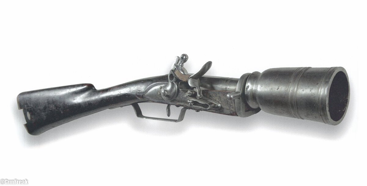 Ручные мортирки известны в Европе с конца XVI в. В России они появились в начале XVIII в. и первоначально закупались за границей. К середине этого столетия вышли из употребления в полевых войсках. Мортирки, смонтированные на треножных станках, состояли на вооружении крепостей до конца XVIII в. Вырез на прикладе позволяет предположить, что этот образец представляет собой драгунский вариант. Такая мортирка была изготовлена по английскому образцу (на нее даже установлен замок английского производства) в подарок первому российскому императору тульскими мастерами в начале XVIII века. Одна такая сейчас хранится в оружейной палате московского кремля, но тульчане не были бы собой если бы изготовили оружие в единственном экземпляре. Так что вторую мортирку можно увидеть в Тульском музее оружия. Гладкий кованый ствол калибром 73 мм котлообразный, усиленный поясками. В передней части камора круглая, казенная часть граненая. Общая длина оружия 84 см. Вес - 4,6 кг. Ложа короткая, на при