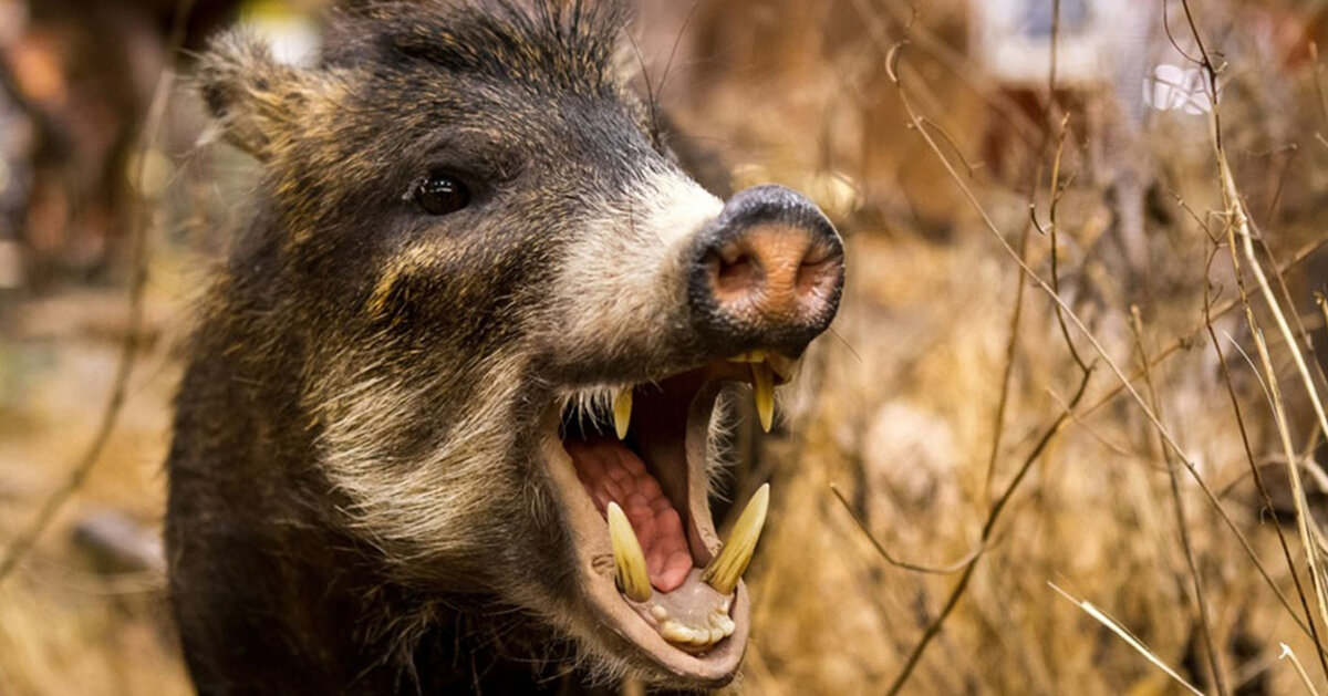 Дикий кабан - второе по счету животное, которое было одомашнено человеком. Именно вепрь считается предком обычной домашней розовокожей свиньи, хотя похож на нее лишь отдаленно. Этот зверь имеет темную грубую длинную шерсть коричневого, черного или даже порой сероватого оттенка, а к зиме кабаны обзаводятся теплым плотным подшерстком, который не позволяет замерзнуть. Средний вес секача (самец) составляет 150 кг, но варьируется в зависимости от вида и места обитания, вплоть до 300 кг, рост в холке примерно 1 м, а в длину до 2 м. Самки имеют меньшие размер и массу тела, чем самцы. Шея у кабанов массивная, широкая грудина и узкий таз. На крупной клиновидной голове торчат длинные широкие уши. Благодаря постоянно растущим клыкам и выдающемуся вперед рылу, вепрь может копать даже промерзшую землю. Дикий кабан не является трусливым животным, и может дать отпор не только человеку, но даже и рыси, волку, тигру и т.д. Он берет их на таран, насаживая на свои огромные клыки, которые достигают 25 см