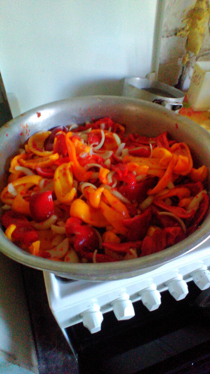 Это не только вкусно, но еще и очень красиво. Такое жизнерадостное блюдо!!! Для приготовления вам потребуется: 3 кг - сладкий болгарский перец, 1,5 кг - репчатый лук, 1,5 кг - красный помидор, 3 шт - горький перец, 1 стакан сахара, 1 стакан- растительное масло, 0,5 стакана - уксус 9%, 2 столовые ложки соли. Приготовление: Почистить и порезать помидоры и с горьким перцем пропустить через мясорубку. Вылить в таз. Почистить и порезать на 8 частей перец и поместить в таз. Порезать лук полукольцами в таз. Затем, в таз засыпать соль, сахар и подсолнечное масло. Все перемешать и оставить на 30 минут. Поставить на огонь, довести до кипения. После закипания, варить 25 минут на среднем огне, помешивать. Влить уксус и проварить еще 5 минут. Банки заранее простерилизовать. Разложить по банкам и закрутить. Приятного аппетита!!! Если вам понравился рецепт, ставьте лайки , подписывайтесь на канал)