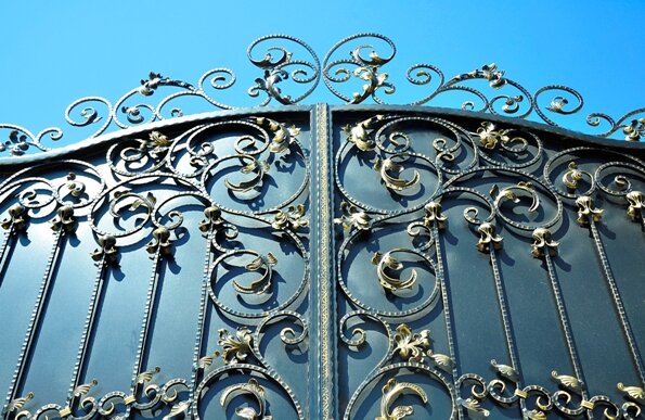 Чтобы сделать красивые кованые ворота надо обратить внимание на следующие детали: Верхний изгиб ворот является самой заметной частью и сильно влияет на красоту изделия, бывает: Наполнение ворот ковкой должно происходить под руководством профессионального дизайнера. Даже минимально наполненные ворота могут очень стильными, особенно если нанести на металл фактуру дерева, камня и т.д. Мы изготавливаем ворота полностью из художественного проката. Ворота закрытые листом скроют Ваш двор от посторонних глаз. Лист можно сделать несъемный или съемный. Обычно применяют несъемное крепление листа сваркой. Это наиболее простой способ не требующий дополнительного оборудования и затрат. Мы делаем листы съёмными, потому что: Придание кованым воротам объема достигается отстранением кованого полотна от листа. Гораздо проще приварить вензеля на лист как это обычно и делают. Это влечет за собой Электростатическая покраска применяется только у нас. Это оборудование не допускает использование д