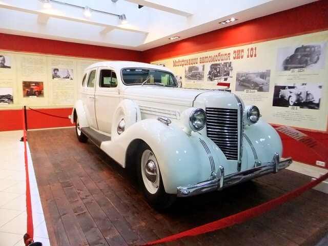 Напротив входа посетителей встречает белый ЗИС-101А.