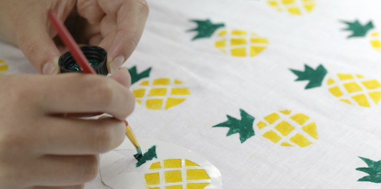 Наносим рисунок на футболку в форме ананасов Ананас является самым популярным плодом этого сезона! Его применяют практически на всех элементах одежды. Поэтому мы решили показать как легко можно самому нанести его на футболку. Что потребуется? Для нанесения рисунка вам потребуется: Все необходимые инструменты и материалы можно приобрести в интернет-магазине Akvarel. Футболка с ананасом – шаг за шагом Источник фото http://navro.org/hand-made-kak-samostoyatelno-nanosit-risunki-na-odezhdu/ Как использовать краски для рисования по ткани? Как ухаживать за одеждой с нанесенным самостоятельно рисунком? Гладить е