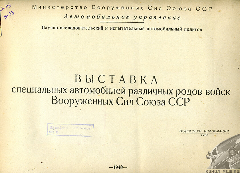 Архивные фотографии с техническим описанием военных автомобилей с выставки 1948 г.