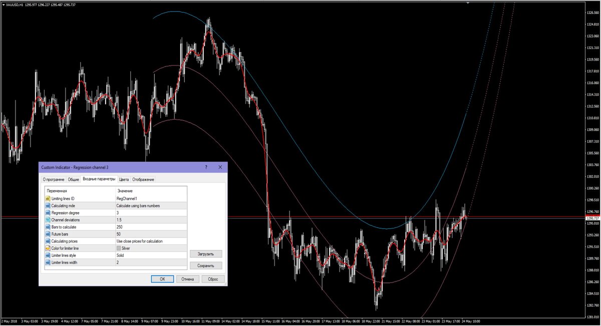 Regression channel совершенно новый канал регрессии от Младена. Это полиномиальный регрессионный канал с несколькими дополнительными параметрами. Самое главное, что он может вычислять значения, используя номера баров, или используя линию вертикального разграничения. Если вы используете линию вертикального разграничения, все, что вам нужно сделать, это перетащить линии в нужные места, и значения будут вычисляться для выбранного сегмента данных. Таким образом, вы можете легко проверить, насколько хорошо (или плохо) часть экстраполяции выполнялась ,так же по историческим значениям (в зависимости от сегмента использования данных в качестве основы для экстраполяции, конечно) Скачать можно в каналеTelegram аналитика Золото (XAU/USD) по ссылке https://t-do.ru/zoloto_analitika