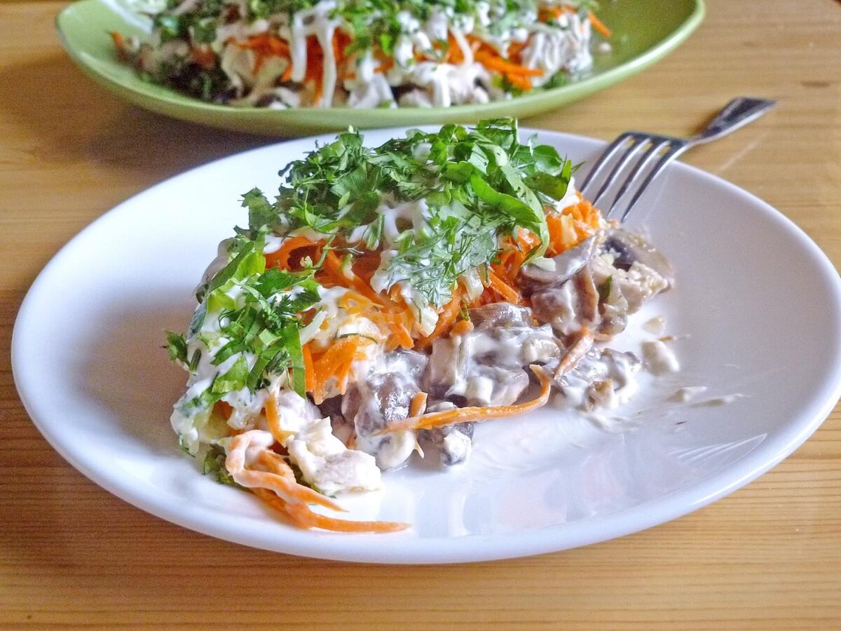 Действительно, этот салат оправдывает свое название. Очень вкусное сочетание жареных с луком шампиньонов с отварной курицей, а морковка по-корейски придает ему остроты и выразительности. Салат как для праздника, так и для семейного обеда.