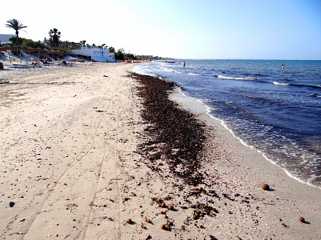 Несколько дней назад я вернулась из рабочей поездки по Тунису. Инспектировала перед высоким сезоном отели и их пляжи. И вот что увидела на пляжах некоторых отелей... Картина, как говорится, маслом! Мечтаем то мы о чистых белоснежных пляжах, согласитесь? А тут такое : И не единожды! Лично я столкнулась с подобным впервые, и решила разобраться: что это и почему отели это не убрали? Я задала вопрос директору одного из отелей. "Нет, это не то, что Вы подумали! И верблюды тут тоже не при чем! :) " - посмеиваясь над моим невежеством, начал он. "Это водоросли! Чаще всего они бывают в мае. И изредка в течение сезона, после непогоды. Мы стараемся часто их не убирать, чтобы не нарушать морскую флору. Вода сама их скоро смоет. Кроме того, эти водоросли используются в совсем не дешёвых курсах талассотерапии. А на пляже Вы можете пользоваться ими бесплатно! :)" - ответил он, и взял в руки один из шариков. "А это разновидность сухих водорослей, мы их называем - шары Нептуна. Есть специальны