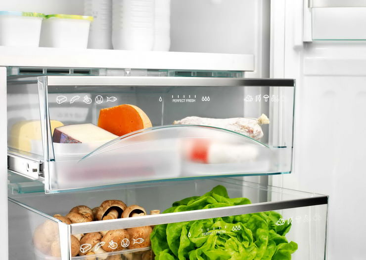 В инструкции по пользованию к каждому холодильнику все подробно расписано. Сырое мясо и рыбу нужно хранить при минусовой температуре и только в нижних ящиках. Для фруктов и овощей требуются совершенно другие условия. Есть специальные места для хранения колбасы, сыра, вареного мяса.