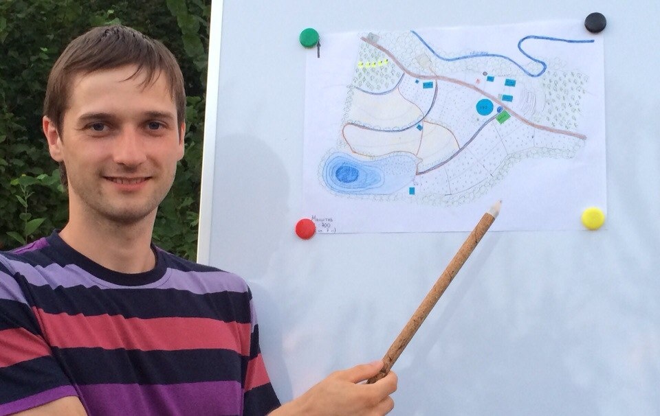 Немногие знают, что кроме продажи настольных игр, я занимаюсь изучением пермакультурного дизайна (этичное использование земли). Я загорелся этой идеей около трех лет назад. Мне всегда нравился дизайн как таковой, но вот дизайн сообществ растений, водной системы, устойчивой к засухам, планирование микроклимата, изменение микробиологии почвы, помощь животных в обработке почвы - это все выходило за грань моего понимания и в то же время увлекало все больше. Я прошел Базовый курс пермакультурного дизайна А. Собкалова и успешно защитил проект на основе планирования участка 3Га в Адыгее. На следующий год я поступил на Сертификационный курс, который еще прохожу. Для его защиты нужно создать подробный дизайн своего участка. Мне понадобилась земля. Прошел год в поисках - теперь у меня есть 3,3 Га. Серьезность намерений пугает моих близких все больше. Я городской житель, у меня не было даже деревни с бабушкой. - Сильное заявление! Обращать внимание я на него конечно не буду. P.S: на полу объ