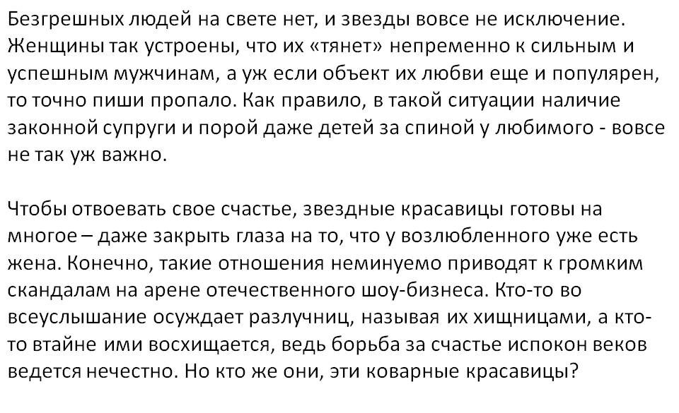 Увела мужа. Знаменитости, которые увели мужей из семьи.