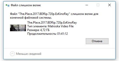 Как вы уже поняли, проблема в файловой системе USB-накопителя. По умолчанию производители используют файловую систему FAT32. Данная система используется давно (еще с с Windows 95 OSR2), прекрасно себя зарекомендовала в плане надежности и совместимости, но есть у нее несколько недостатков. Один из которых такой — максимально возможный размер файла для тома FAT32 составляет чуть больше 4 Гб (или, точнее, 4 294 967 295 байт).