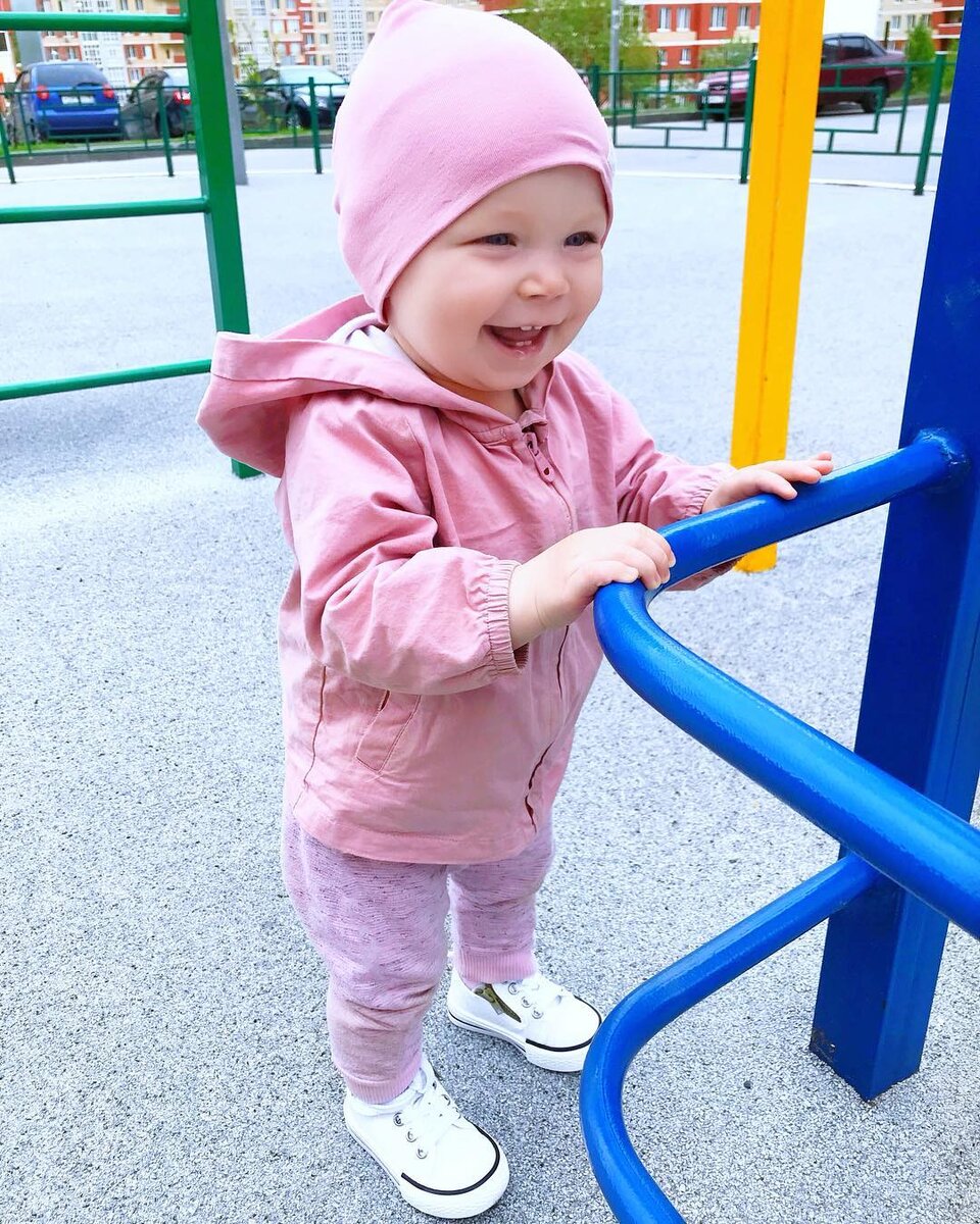 Наша улыбашка 😍 Ну просто всем улыбается на площадке, да и сидя в коляске распознает в частности бабулек и строит глазки 😁