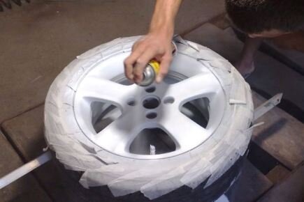 Лакокрасочный материал наносится с помощью такого устройства, как пульверизатор. Предварительно с колесного изделия устраняются старые частицы краски абразивными материалами. После чего поверхность выравнивается и подготавливается к покраске.