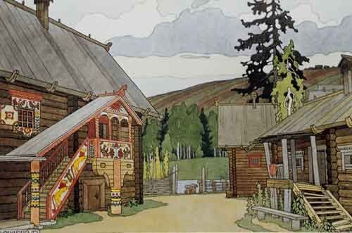 Светелку устраивали обычно над «передом» - избой, выходившей окнами на улицу. И выглядывала светелка балконом на улицу, да балконом не простым, а резным и расписным, красоты невиданной, неслыханной. Да и вся изба словно озарялась, окрылялась, украшенная крыльцами, гульбищами, балконами, словно забывала о суровой непокорной зиме, примирялась с нею, звала, как и любого другого погостить.