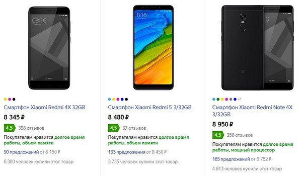 Xiaomi Redmi 4X 3/32GB (8 345 руб.)