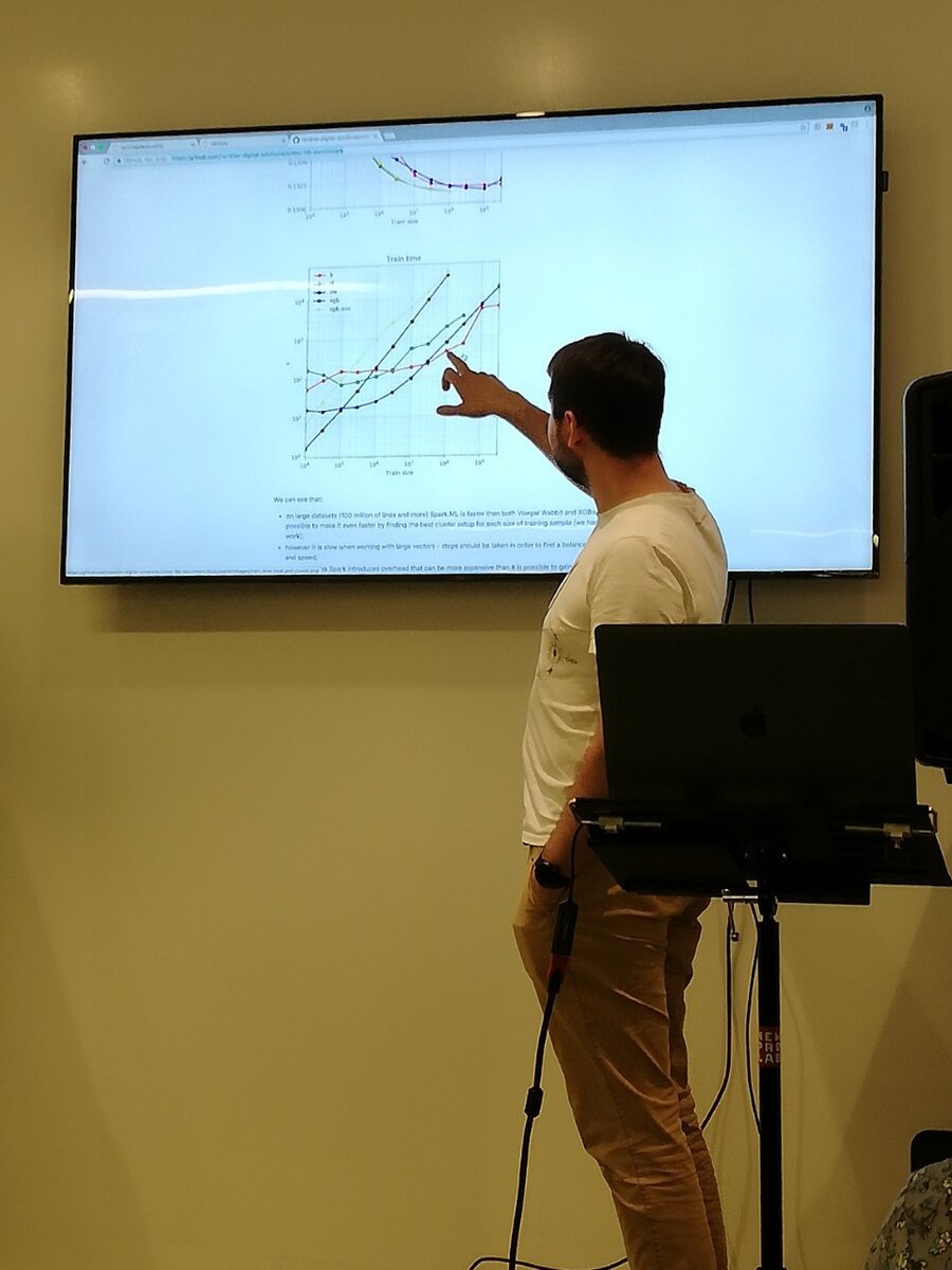 На этих занятиях мы научились работать с библиотекой pyspark.ml, которую можно назвать аналогом sklearn, но для работы в Spark. Преимущество этой библиотеки - она позволяет обучать модели распределенно, однако хорошо себя показывает только на больших объемах данных. Обучение и создание моделей примерно такое же как в sklearn: импортируем нужную модель, берем данные и обучаем на них. Также есть инструменты для токенизации, работы с текстом и проверки качества модели. Ну и классификация с кластеризацией такие же как в sklearn. Из интересного это пакет pyspark.ml.recommendation, в нем реализованы алгоритмы для создания рекомендательных систем. На занятии мы рассмотрели ALS. На вход ему подаются Id пользователя и товара, а на выход к примеру оценка, которую пользователь поставил товару. И можно предсказывать, как оценит человек другой предмет. И по этим оценкам строить предполагаемый рейтинги для рекомендаций. Модель работает неплохо и хорошо показала себя на наших лабах.