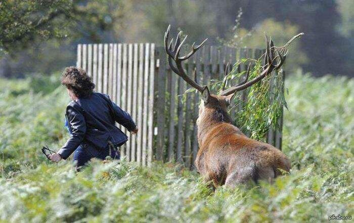 Иногда нам кажется, что мы знаем о поведении животных многое или почти все. Но это совершенно не так! Иначе, чем объясняется тот факт, то в деревне Тупица Пермского края, все лоси в один миг начали следить за людьми? Лоси очень крупные животные и если они вдруг начинают за вами следить, то лучше не рисковать и попробывать найти себе хорошее укрытие. Что нужно делать, если вы вдруг попали в подобную ситуацию? Во-первых, ни в коем слуае не привлекайте внимание лося! Попробуйте изобразить дерево или куст. Если лось понял, то вы его обманываете, сорвите две ветки (если есть такая возможность) и приложите их к голове, делая вид, что вы тоже лось. Если лось очень умный, он может заподозрить неладное. В таком случае, нужно любым способом отвлечь его внимание или сбить со следа. Например, начните резко бежать в одну сторону, а потом неожиданно поверните обратно. В любом случае не теряйте самообладания и постарайтесь сохранять спокойствие.