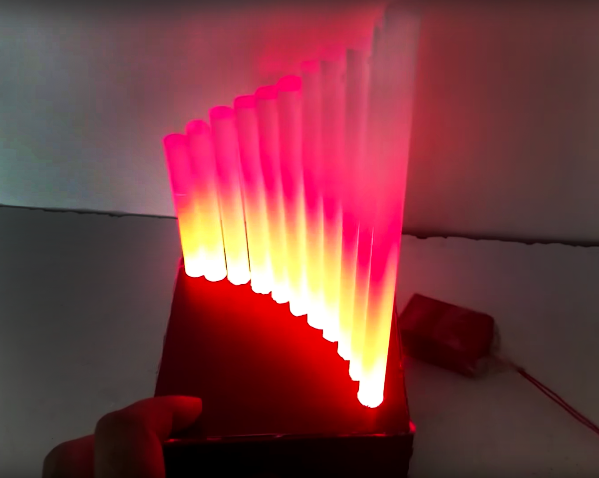 Очень стильно и оригинально выглядит такой светильник и никому даже в голову не придет что он сделан своими руками. Нам понадобится: Отмерьте и отрежьте 10 стержней разной длины от 10 до 20 см. Самый маленький получится длинной 10 см, следующий 11 см, и так до 20 см. На квадратной картонке нарисуйте дугу, это можно сделать с помощью тарелки. Вдоль этой дуги рисуем 10 кружочков рядом друг с другом, для этого ставьте стержень на картонку и обводите его. Вот что должно получится Делаем отверстия ножом Вот так должно получится. Сделаем ножом отверстия с одной стороны всех стержней Диаметр отверстий должен быть такой, чтобы в него влезали лампочки от гирлянды Вставляем стержни в картонку, так чтобы отверстия оказались внизу. Закрепляем с другой стороны термоклеем Скрепите капелькой термоклея все стержни между собой Вот что получилось. Приклеим прямоугольные картонки к нашей заготовки, так чтобы получилась коробочка. Вставляем в отверстия в стержнях лампочки. Убираем остатки гирлянды в коро