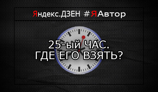 Много людей задаются вопросом: "Где взять больше свободного времени?". Сейчас попробуем разобраться. Приятного чтения, друзья. Всем нам известно, что в сутках ровно 24 часа. Давайте распишем сутки по часам. Будем рассматривать ситуацию на человеке, который имеет здоровый, нормированный сон, а также работает по графику 2/2 по 12 часов. Заранее скажу, что буду брать ровные числа для конкретики. Из 24 часов, в среднем 8 часов уходят на сон. Из оставшихся шестнадцати, двенадцать уходят на работу. Убираем 1 час на то, чтобы добраться до дома и работы. Остаётся около трёх часов. Здесь всё интереснее, т.к. каждый человек данным временем уже распоряжается сам. Тратя его на свои интересы, хобби, готовку еды и т.д. При необходимости что-либо делать, человек этим временем распоряжается правильно, но у многих возникает вопрос: "Мне не хватает времени. Где мне взять дополнительное свободное время, чтобы заниматься своими делами?" И вот мы подошли к самому важному. Где же взять 25 час в сутках? Ког