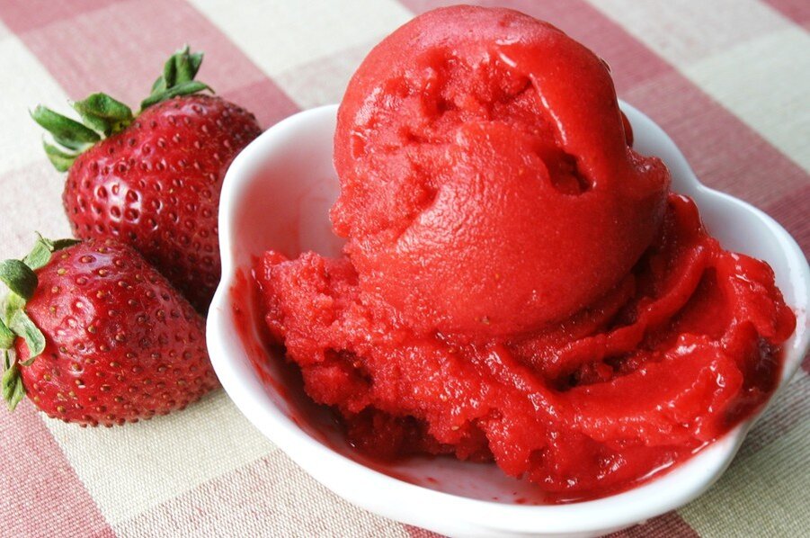 Приготовление 6 часов и 40 минут. Рецепт на: 3 персоны. Ингредиенты: клубника 500 г апельсины 2 шт. сахарная пудра 150 г вино сухое красное 1 бутылка мята 1 пучок перец белый горошком 10 шт. гвоздика 6 шт. Способ приготовления: Цедру апельсинов натереть на мелкой терке. Вино влить в кастрюлю, добавить 100 г сахарной пудры, цедру апельсинов, гвоздику, перец, перемешать и уварить на небольшом огне примерно наполовину. Процедить вино, остудить и поставить в морозильник или отправить в мороженицу. Время от времени перемешивать сорбе, чтобы оно замерзло равномерно. Клубнику крупно нарезать, посыпать оставшейся сахарной пудрой и листьями мяты. Выложить клубнику в креманки или на тарелки, сверху положить шарики сорбе. Приятного Вам аппетита! Подписываемся на канал и ставим Лайк. Следующий уникальный рецепт уже скоро на канале. Не пропусти!