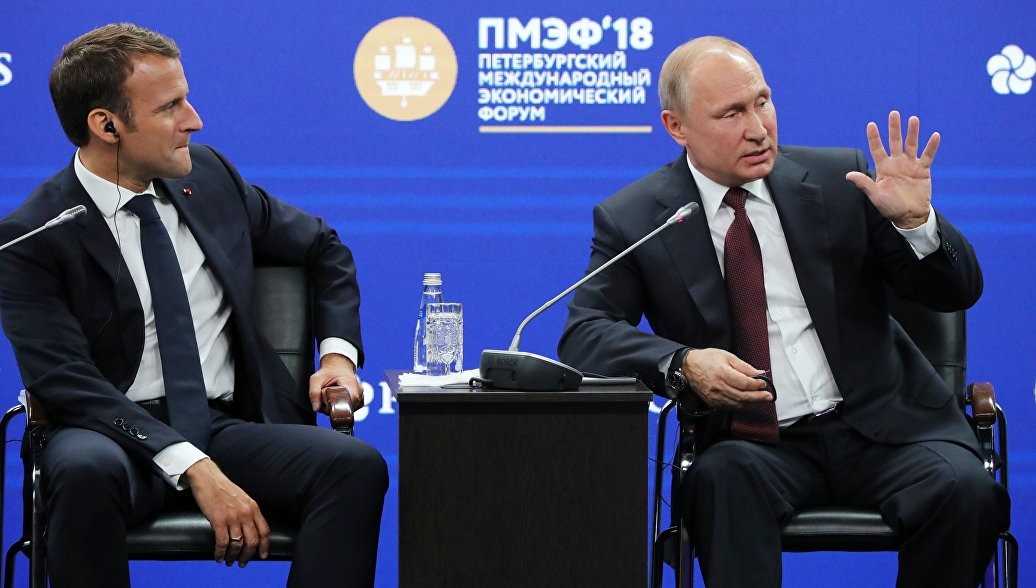 "Господин Президент, дорогой Владимир, мы знаем, что вы обожаете дзюдо, мы знаем, что вы высоко цените гибкость, которая опирается на контроль собственной силы, такие качества, как воля, характер и уважительное отношение к противнику. Я люблю спорт, люблю футбол. Названные мною качества важны и в футболе. Давайте сделаем так, чтобы мы играли в коллективную игру, которая будет опираться на ценности доверия ", - сказал Макрон, выступая в пятницу на пленарном заседании Петербургского международного экономического форума.