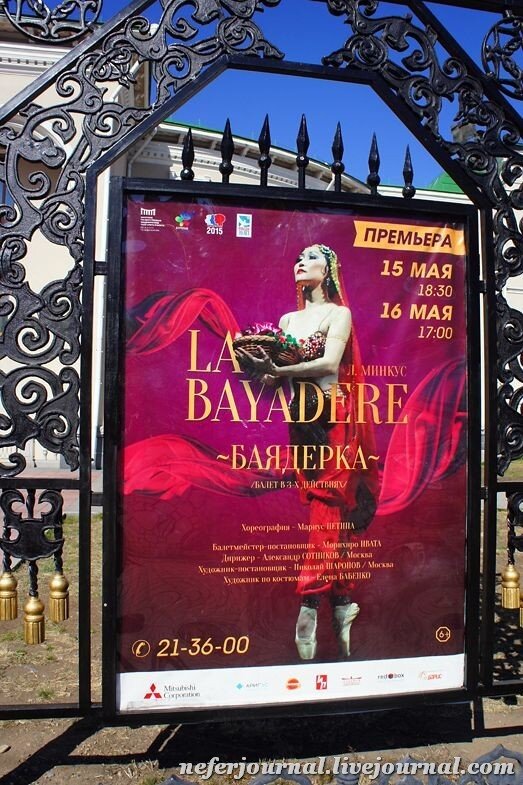 Само здание театра является памятником архитектуры федерального значения. Сталинский ампир с национальными декоративными элементами (показывала здесь). Оно строилось с 1945 года по 1952 год. За всю историю театра было поставлено более 300 спектаклей российской, мировой классики и по произведениям бурятских композиторов. Пробыв всего пять дней в Улан-Удэ я умудрилась попасть на премьеру балета "Баядерка"! Заодно посмотрела, как там внутри :)
