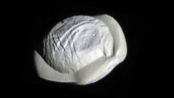 Спутник Сатурна Пан Швейцарские исследователи изучили форму спутников Сатурна, зная то, что некоторые из них обладают довольно странными формами, похожими на хорошо известные продукты питания. Оказалось, что такое строение могло стать следствием прямого столкновения спутников друг с другом и их последующего объединения, за счет чего образовывался характерный гребень. О своих научных моделях этого процесса ученые рассказали в журнале Nature Astronomy. Благодаря аппарату Cassini, который изучал систему Сатурна более десяти лет, у исследователей появилась возможность подробно изучить формы объектов, находящихся как рядом с планетой, так и на достаточном удалении от нее. Ученые обратили внимание на странную форму некоторых из них, и для того, чтобы узнать, как она образовалась, создали компьютерные модели столкновения космических тел на разных скоростях и под разными углами. Выяснилось, что если два объекта, схожие по массе и форме, сталкиваются друг с другом почти лоб в лоб на незначител