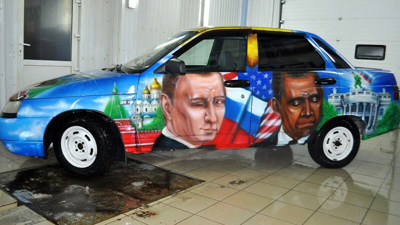 Это реально красиво! Аэрография: Путин на машинах