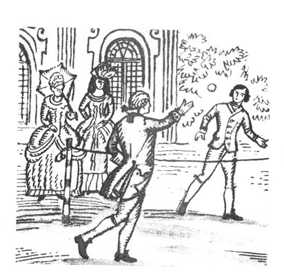 В XVIII веке сердцевина мяча, состояла из шара, выточенного из пробкового дерева. Он плотно обворачивался жгутом из крученой шерсти или войлоком и сверху обшивался кожей.