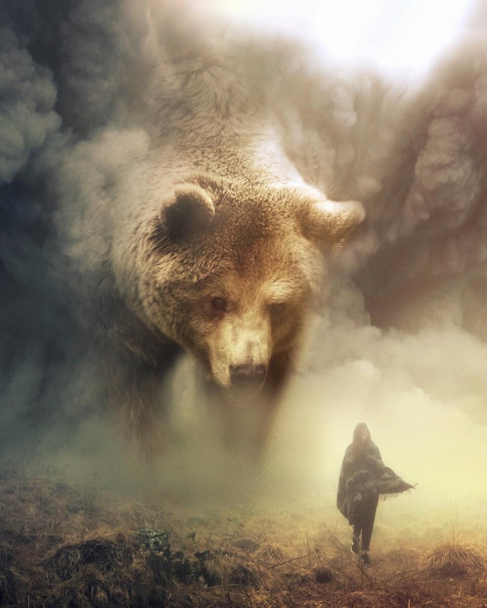 И выехал на мост Змей девятиглавый. Гнедой конь под ним споткнулся, ярый сокол на плече встрепенулся, пёс цепной позади ощетинился…