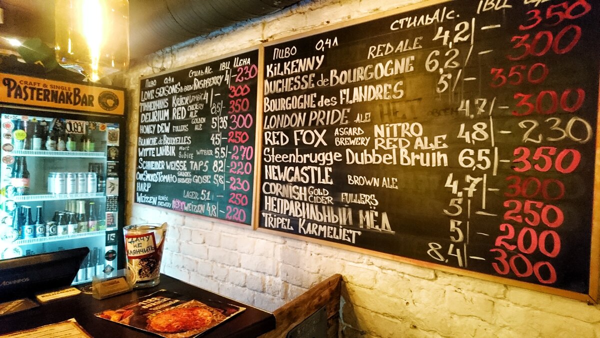 Продолжаем изучать Маяковскую. Аккурат между @pivbarmoscow и @the_mosman расположился бар "Пастернак". Находится в подвале и занимает два больших зала. Интерьер типичный для крафта - в стиле лофт. На стенах парочка прикольных граффити. Из пива большой выбор классического пива: Харп (250 рублей), Ньюкасл (300), Бургунь де фландерс, Килкенни (по 350) и подобное. Есть и крафт (около 15 кранов), преимущественно из российского и холодильник с бутылочным. Цены от 150 до 350 рублей. Что приятно - имеется крепкий алкоголь. Виски (325), водка (245), ягерь (345), текила (295) и прочее. По поводу кухни много сказать не могу - только то, что она есть. В меню бургеры, закуска, креветки и подобное. В каждом зале висит телевизор, а во втором делают кальяны.