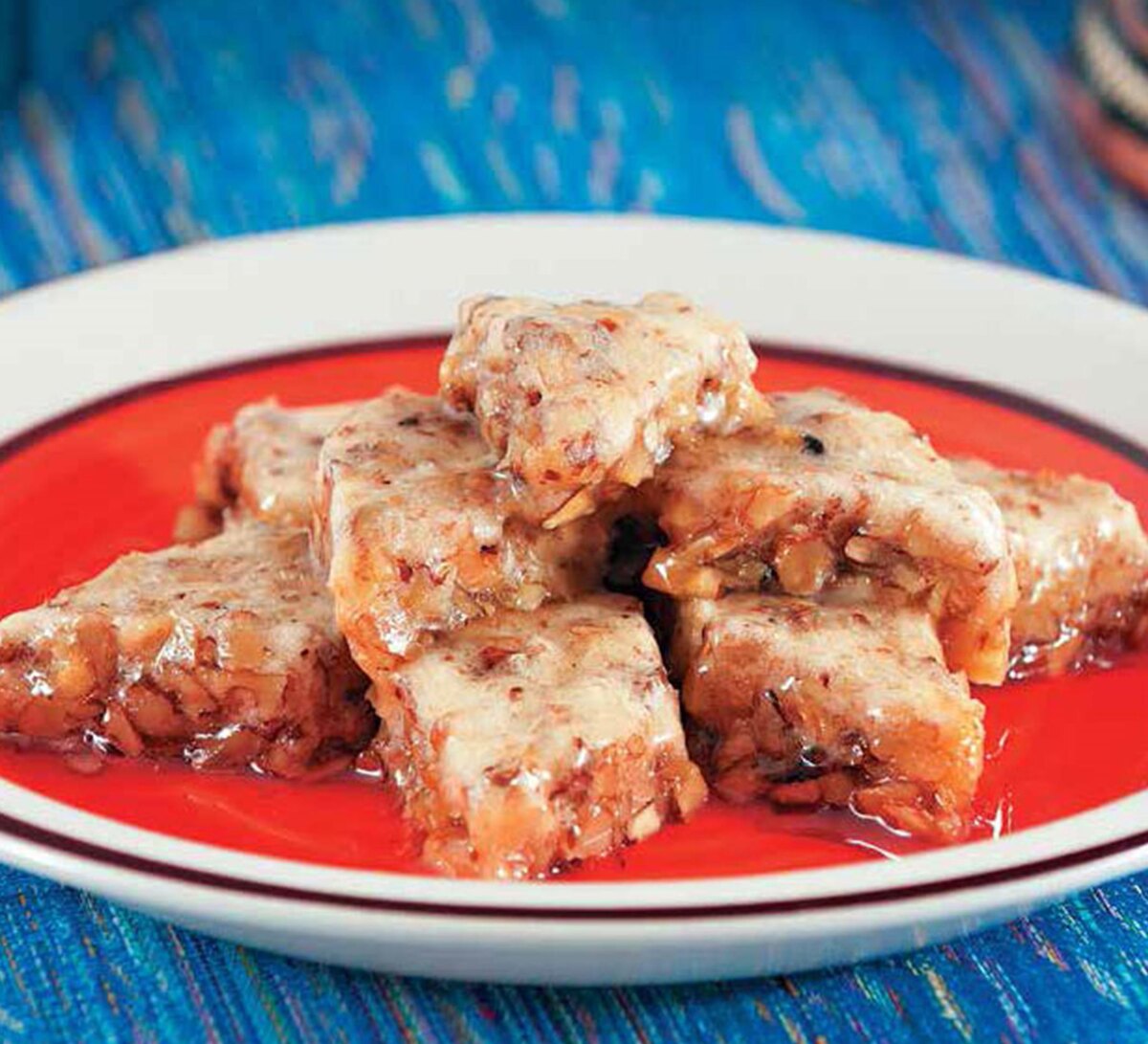 Время приготовления: 30 мин + охлаждение Ингредиенты: 0,5 стакана воды 3 ст. л. светлого мёда 1 стакан сахара 2 ст. л. ванильного сахара 5 яичных белков 3 ст. л. сахарной пудры 1 стакан очищенных грецких орехов Приготовление: 1. Воду влить в кастрюлю, добавить мёд и сахар, варить до загустения. В конце добавить ванильный сахар. 2. Белки охладить. Соединить с сахарной пудрой, взбить в крепкую пену. 3. Грецкие орехи измельчить. Взбитые белки медленно ввести в сироп, добавить орехи, перемешать. Проварить на слабом огне в течение 2–3 минут. 4. Готовую массу выложить в форму так, чтобы высота слоя составляла 1–2 см, охладить до комнатной температуры. 5. Нугу разрезать на прямоугольники или ромбы, посыпать сахарной пудрой, подавать к столу. Приятного наслаждения!! Подписывайтесь на наш канал!! спасибо за внимание!!