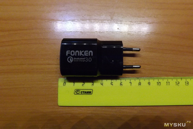 Приобретя телефон с разъёмом Type C и поддержкой быстрой зарядки (до 9 вольт, 1,5 ампера), я начал обзаводиться нужными аксессуарами к нему: зарядными устройствами с QC 3.0, кабелями различной длины, переходниками, держателями и пр., и пр. У меня уже есть три зарядки с QC 3.0, две сетевых и одна автомобильная. Все работают, но мне этого мало. Одна зарядка будет встроена в блок розеток 220v, одна уедет на работу, и ещё одна нужна для «тревожного чемоданчика»*. * «тревожный чемоданчик» — небольшой кейс, куда помещаются: сам телефон, повербанк с QC 3.0, необходимые кабели, переходники, ЗУ и прочая мелочёвка. Нужен для выездов: на рыбалку, на природу, в командировку. Соответственно, присматривал что-то компактное. На ЗУ Fonken посматривал давно, но из-за габаритов сомневался в заявленных характеристиках. Но со временем на ЯД набралась небольшая сумма в рублях, и я с удовольствием потратил её на эту зарядку. Прилетела за рекордные 9 дней. Упакована в простой полиэтиленовый пакетик, даже пу