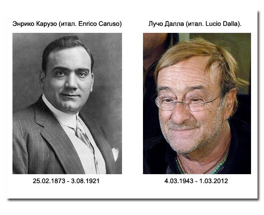 «Памяти Карузо» / Caruso/ - песня, посвященная Золотому Тенору – Энрико Карузо. Ее исполняли многие: Лучано Паваротти, Андреа Бочелли, Мирей Матье, Хулио Иглесиас, Тамара Гвердцители, Алекесандр Градский, Аль Бано, автор песни Лучо Далла пел дуэтом с Лучано Паваротти, Лара Фабиан и др.