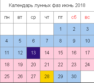 Посевной календарь на июнь 2018 года, полезные советы. Характер работ на огороде и в саду меняется с приходом лета. Высаженную рассаду надо чаще поливать, а на борьбу с сорняками и вредителями уходит все больше времени. Лунный календарь на июнь поможет вам определиться с благоприятными днями для работы. Лунные фазы в июне 1-12 июня - Луна убывает 13 июня - новолуние 14-27 июня Луна растет 28 июня - полнолуние 29-30 июня - Луна убывает Благоприятные дни для посева семян на рассаду Благоприятные дни посева и посадки цветов Запрещенные дни для посева и посадки семян Благоприятные дни для посадки саженцев, прививок и черенкования Следует понимать, что таблица рекомендует самые благоприятные дни для работ, но это не означает, что в другие дни нельзя заниматься посадками. Не рекомендуется сажать только в запрещенные дни. Сейчас существует огромное количество подкормок, которые укрепляют растения и борются с болезнями. Однако злоупотреблять ими не стоит. Например, растения реагируют