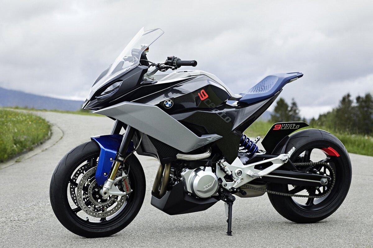 26 HD ФОТО: http://in-moto.ru/представлен-предсерийный-концепт-bmw-9cento В рамках автошоу "Concorso d’Eleganza Villa d’Este 2018" на озере Комо, что в Италии компания BMW представила концепт BMW 9Cento (читается "нове ченто"), который должен положить начало новому классу в модельной линейке концерна. BMW 9Cento представляет собой что-то среднее между нейкедом и спорт-туристом, обладающим достаточной универсальностью, при этом сохраняя агрессивность и остроту управления среднекубатурных городских мотоциклов. В качестве силовой установки для BMW 9Cento был выбран мотор от нового BMW F850GS 2018, а учитывая то, что это рядная двойка с мощностью 93.8 л.с. во варианте GS, то на дорожнике баварцы легко могут "добить" ее до 105-110 л.с. распредвалами или прошивкой, или и тем и другим, и тогда уже это будет один в одинKTM 790 Duke 2018, только более универсальный, у которого, кстати, по традиции может появиться версия "GT", со стеклом и прочими туристическими делами, - да здравствует конкуре
