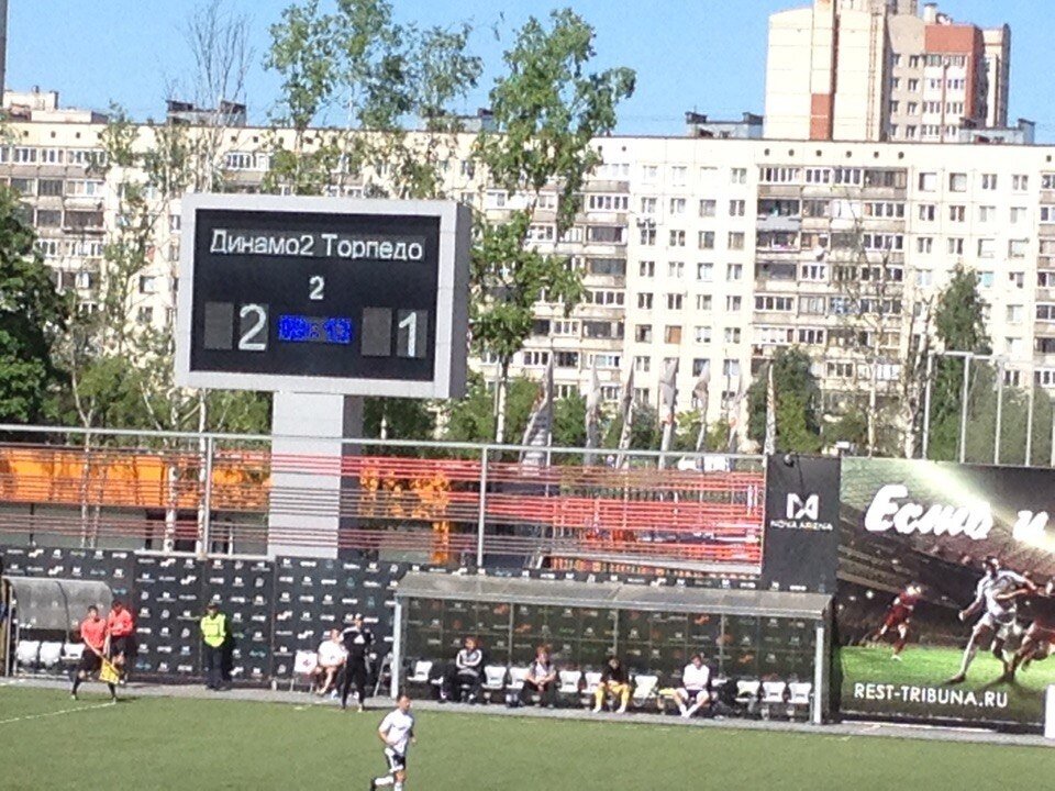 В воскресенье завершилось первенство России по футболу среди команд группы «Запад» второго дивизиона. В заключительном, 26-ом туре состоялся матч между «Динамо-2» (Санкт-Петербург) и владимирским «Торпедо». Игра прошла на питерском стадионе «Нова Арена». Уже на старте поединка команды обменяли мячами: на первой минуте ворота черно-белых поразил динамовец Дмитрий Суконкин, на что через две минуты ему ответил торпедовец Александр Заикин, сравнявший счет. Далее команды проиграли "в сухую" почти до конца матча, пока на 86-й минуте нападающий дублеров "Динамо" Александр Иванов не забил в ворота нашей команды. Итоговый счет 2-1. К сожалению, не в пользу владимирского футбольного клуба.
