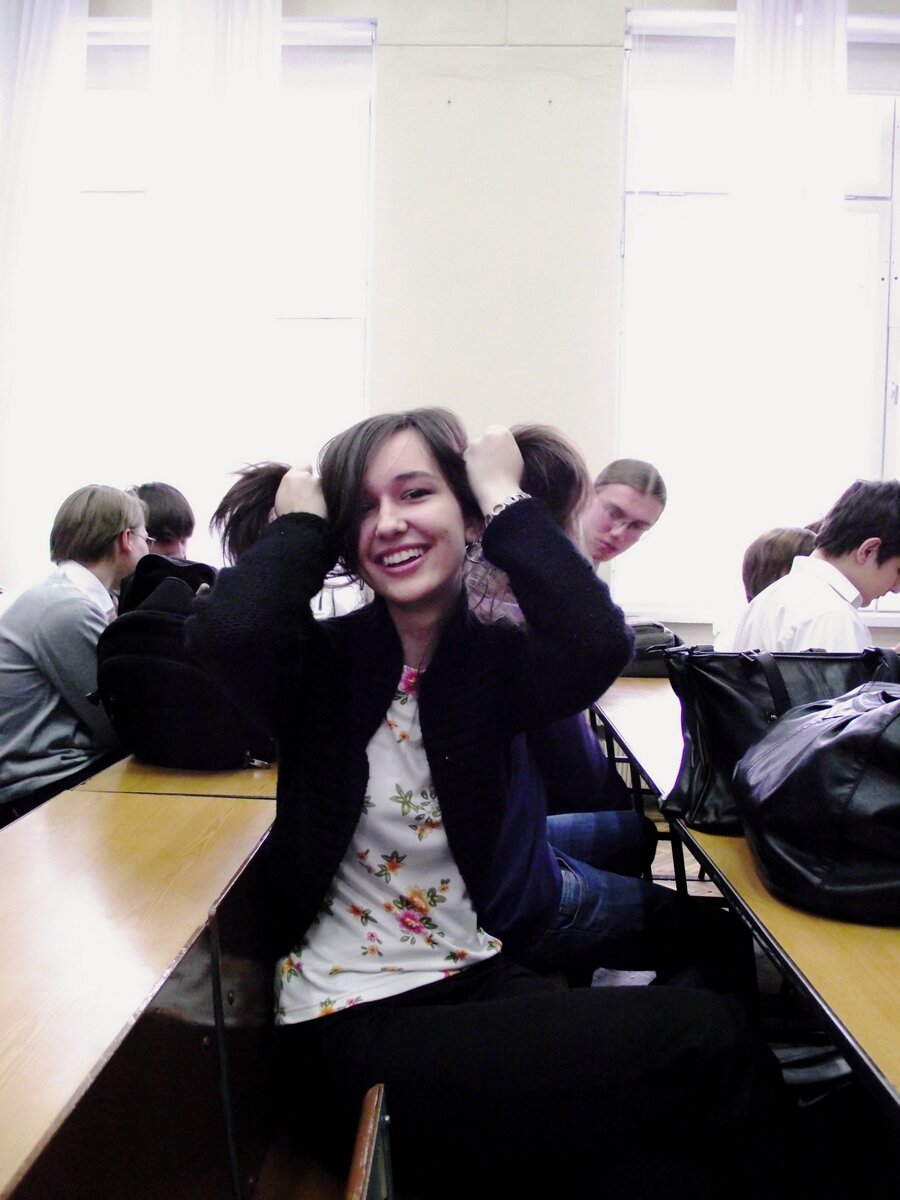 Да, устает к концу семестра, «забивает» на уроки. Но на экзамене… Была проблема по английскому языку. И вот - последняя попытка исправить, дочь в числе первых.